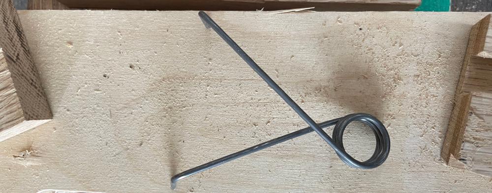Springs are clearly pivotal to pump organs. “Harmonium springs” are usually single ply leaf springs, pre-bent into two arcs, riveted together at one end. Those aren’t easy to find (the closest shop I found was in Hungary). But a spring is a spring, at least in theory, and a torsion spring should also do the job.