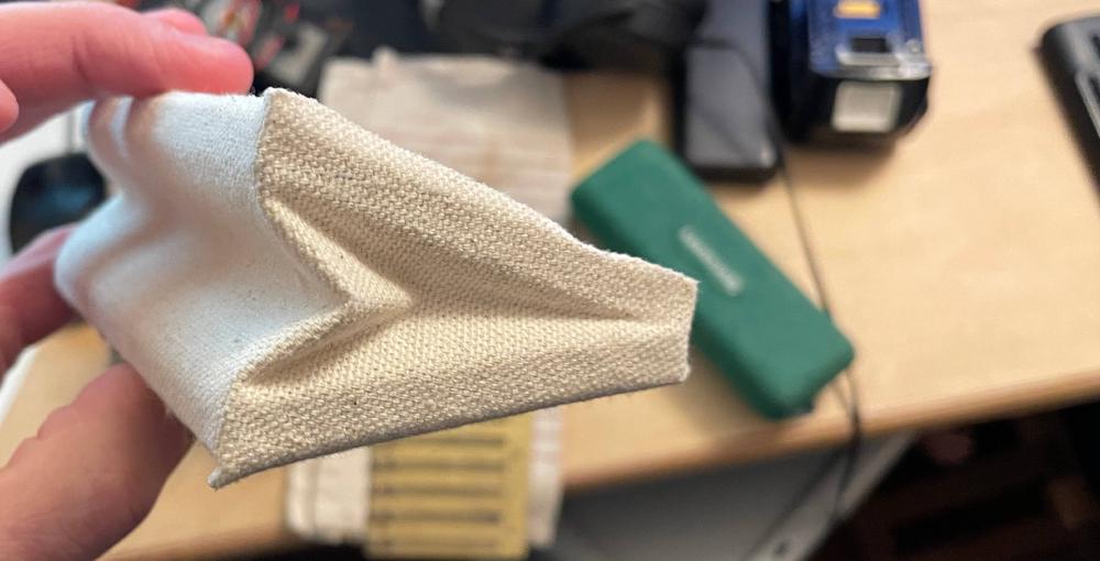 I did make one mistake, which is that the fabric over the spine doesn’t have any slack. This means that when you close the bellows you’re pulling the seam apart. Real bellows have a bit of spare here.