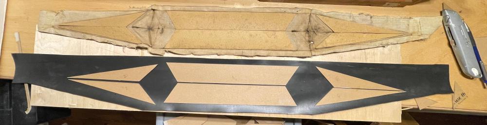 Good. I learned something, and that’s what models are for. I transferred the design onto canvas and cut out my first real, if miniature, set.