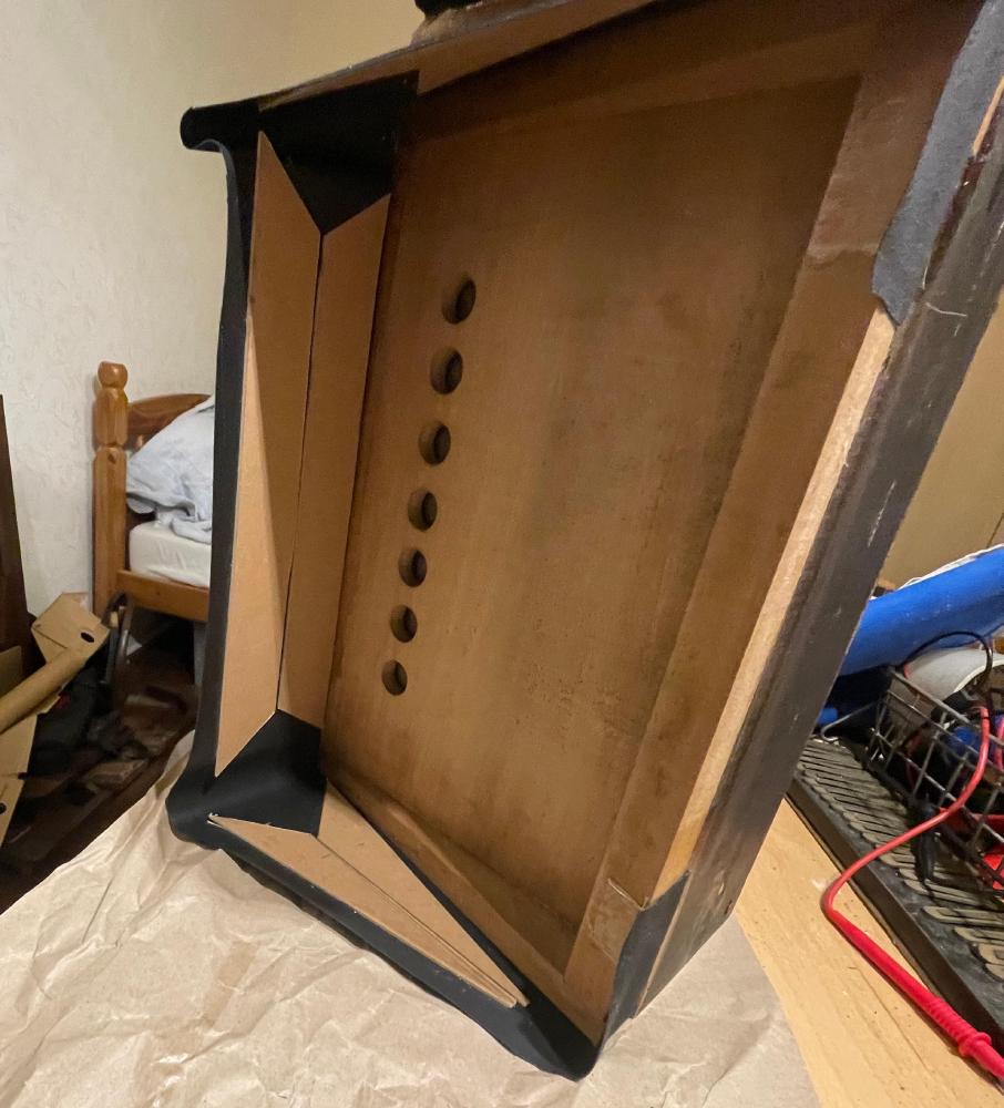 I eventually found this black rubber cloth from Dean Organ Builders. This is a family business with an interesting history! Richard Dean was very helpful in answering my questions and helping me to identify the right weight of cloth (the answer, as with many things in life, is ‘medium’). I didn’t do the exact maths, but it probably works out about the same price as the Plasti Dip, and has the benefit of being made for the purpose.